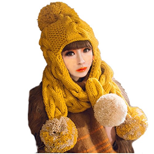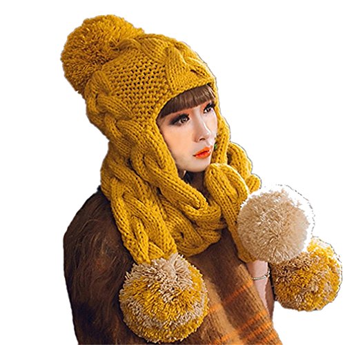 Product Description Condition:new Product category: knitted scarf hat Color: yellow, Size: Medium material: acrylic fiber Applicable gender: women Cap style:beanie Suitable for season: winter, autumn,spring; Package:1*scarf hat and 1*gloves