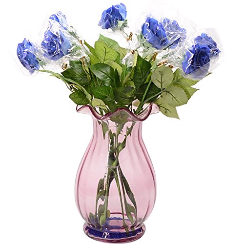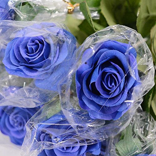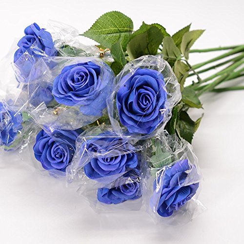 SHENGXIA 10Pcs Real Touch Artificial Silk Rose Flowers Bridal Bouquet Home Party Wedding Decoration Blue