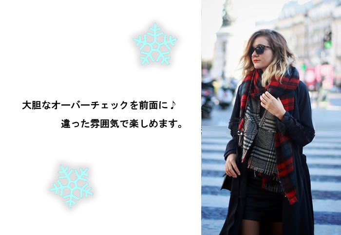 グレンチェックとオーバーチェックのリバーシブル・大きなマフラー