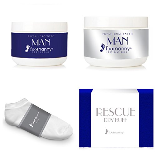 Studio : Footnanny Publisher : Footnanny Binding : Misc. Product Description Give the gift of Footnanny for your Hanukkah "Festival of Lights" Celebration. Footnanny paired some our products that match in the colors that represent Hanukkah. This Set is for the male customer and includes: One Footnanny MAN Foot Cream 8oz Jar, One Footnanny MAN Soaking Salts 8oz Jar, Two Pairs Footnanny White Cotton Ankle Socks and One Blue Footnanny RESCUE Buffer. 3 easy steps to smoothness. 0