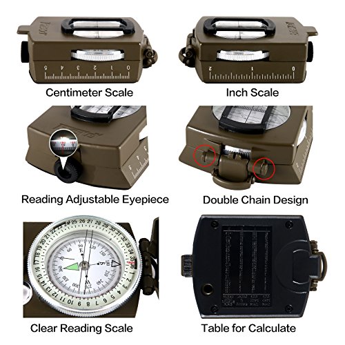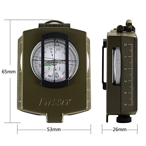 Studio : Eyeskey Publisher : Eyeskey Product Description Get ready for the adventure of your life with no worries about getting off track with the Eyeskey compass. Head up the mountain, down the trail or around the bend with peace of mind knowing you have a handy and well designed navigational aid that will help get you where you want to go! Offering a little different style to the traditional Military style compass, there is no flip up optic to peer through (like in a traditional lensatic compass). This model uses a true sighting optic that allows you a direct read of the internal compass card housed in the fluid filled capsule. And the vertical lubber line of the sighting optic lets you take full advantage of the 1 degree resolution used on the compass card. Eyeskey is committed to providing the customer with the best source for value possible on the market. You will enjoy the quality, function and usefulness this Compass with Pouch has to offer. Other features of this optical sighting compass include: Durable Metal body with plastic back 0-360 Scale with 1 degree resolution Luminescent North Points Degree to percent scale Glass sighting window with target scale Bubble level Threaded back (for tripod mount) Thumb hold Neck Lanyard Inch and cm scales Nylon carry case with belt loop Dimensions (closed): 3.25in x 2.5in x 1.2in Weight: 6.7 oz. Material: Metal 0