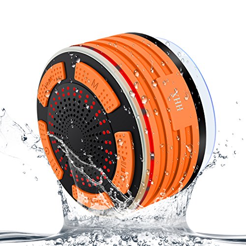 -. Feature : IPX7 FULLY WATERPROOF: IPX7 rating design makes this waterproof bluetooth speakers can be submersed in 3 feet of water, up to 30 minutes, as a waterproof shower speakers, tub speaker, pool speaker, shower radios, floating speaker, beach speaker etc, perfect for all water environments.(Remember to dry it soon for longer lifespan) / SUCTION CUP & FLOATING: Totally waterproof and suction cup design makes this waterproof speaker-waterproof radio can floating on the water or stick to your shower wall, mirror, pool deck, kitchen counter or whatever slick surface. Perfect gift for Birthday, Holiday, Christmas etc. / POWERFUL PORTABLE SPEAKER: High-performance 5W driver makes room-filled loudness, bass strong and deep. Lightweight compact design, you can easily carry this portable wireless speakers/portable radio on the go! perfect companion for outdoor activities. / EASY TO USE: Easy and fast connection to your iPhone/iPad/Phones/Tablet, from up to 33 feet away; Built-in FM radio and microphone, when you listen to favorite station in shower, and will not miss important calls, these are just a few speaker buttons click! / WHAT YOU GET: HHX Bluetooth Shower Speaker, Micro USB charging cable, user guide, our 30-DAY MONEY-BACK guarantee for any reason and friendly helpful customer service. It would be a wonderful Festival Gift for your beloved ones!