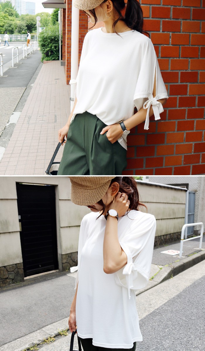 袖スリット入り×りぼんのデザインが印象的な新作Tシャツ♪