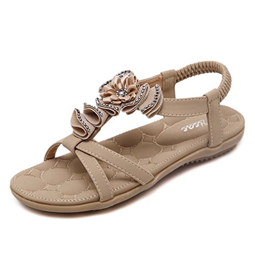 -. Title : Zicac サンダル 滑り止め グラディエーター ビーチサンダル フラットサンダル 編み ロマンチック ファッション シンプル レディース・ガールズ (41/25.1cm-25.5cm, アプリコット)