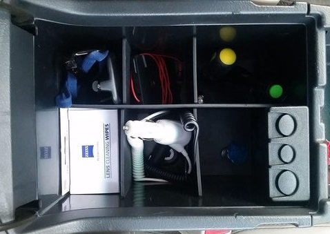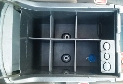 Interlocking plastic dividers provide organization to center console space.