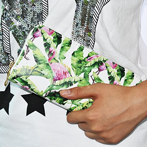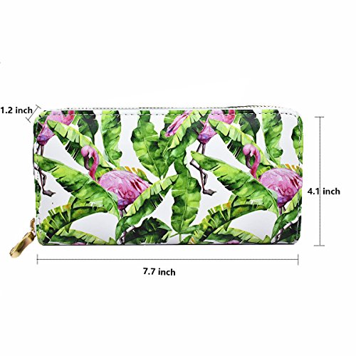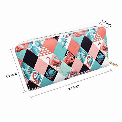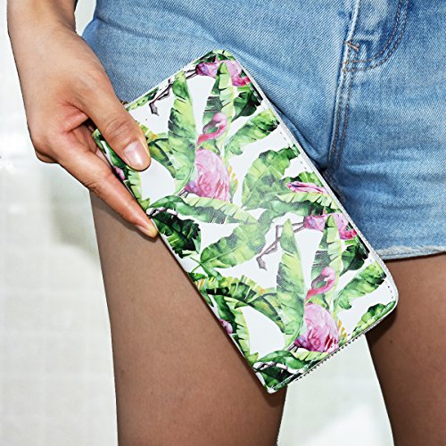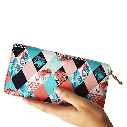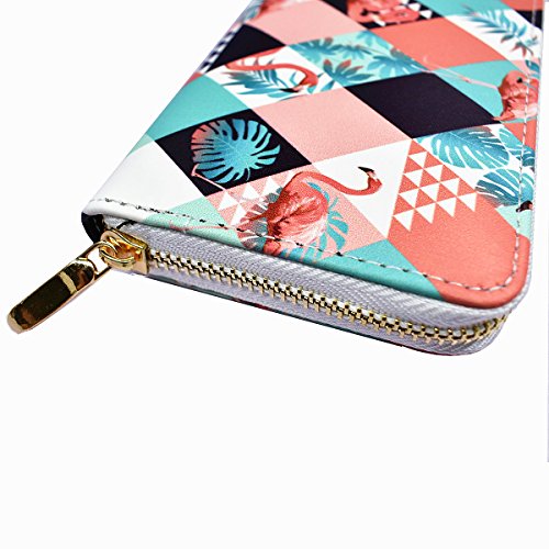 -. Title : Women's Flamingo Elements P.R.Inted Purse Wallet, PU Leather Card Holder Handbag Clutch