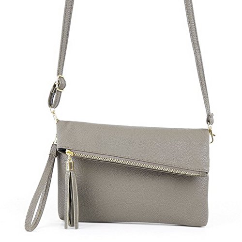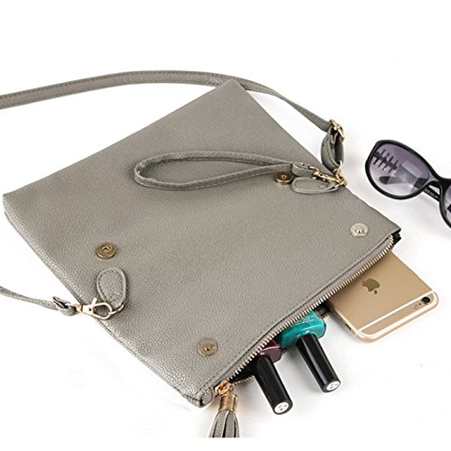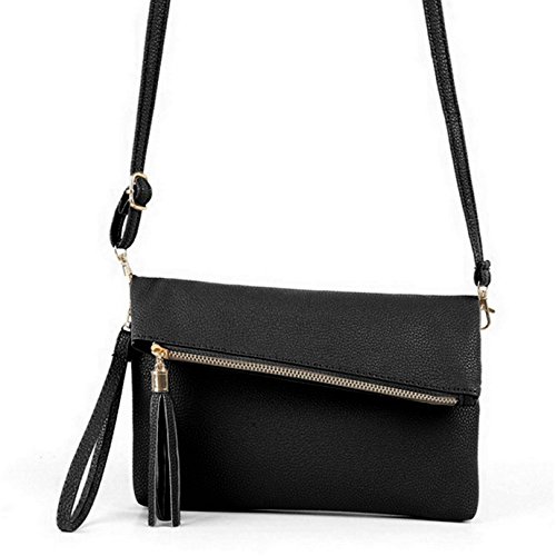 -. Feature : Made of quality leatherette, Lining is polyester. / Size (L*W): 24*17cm/9.5*6.7in / Magnetic snap & Zip top closure, keep your belonging safe and secure. / Cute tassel decor in the flap, gold-tone hardware, Removable and adjustable wristlet and shoulder strap, thi elegant clutch purse can be carried in your hand, under your arm or cross body, your choice! / Classic fashion accessories that compliments any outfit from a day in the office to a night out in town.