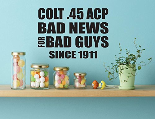 Design with Vinyl Zzz 2633 Colt 45 ACP Bad News for Bad Guys Since 1911 Stylish Vinyl Wall Decal Home Decoration Picture Art, 18-Inch x 18-Inch, Black