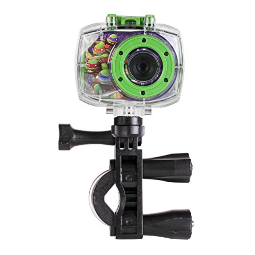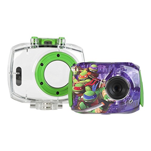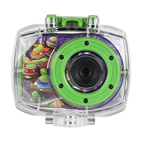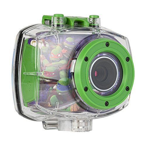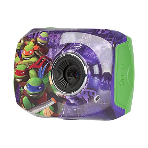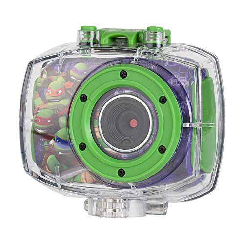 Your little one will enjoy capturing the action on land or underwater using the Teenage Mutan Ninja Turtles Action Camera. Featuring a durable, waterproof case, your aspiring photographer can submerge the device in up to 6' of water, to take stop-motion videos and time-lapse photos. With the included snap n' share software, your child can add creative effects and filters to their photos and videos and share them with friends and family by downloading it all to your computer using the accompanying micro USB cable. The action camera's durable casing protects it from damage from falls or tumbles and conveniently displays all your footage on the 1.8 LCD preview screen. An assortment of mounts enables the camera to attach easily to bikes or your child's head for fun hands-free capture.Feature