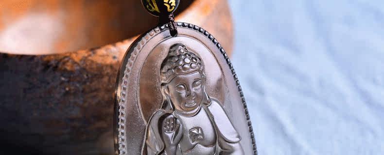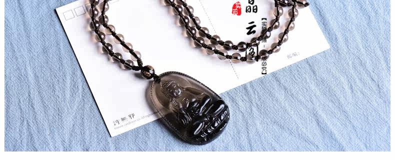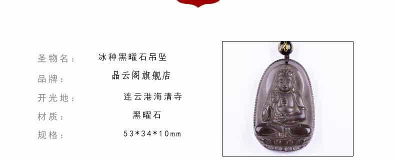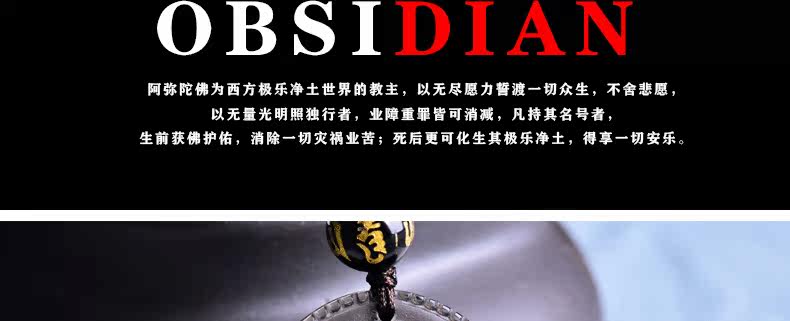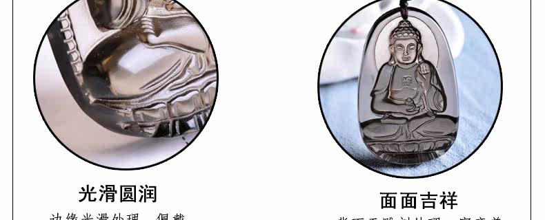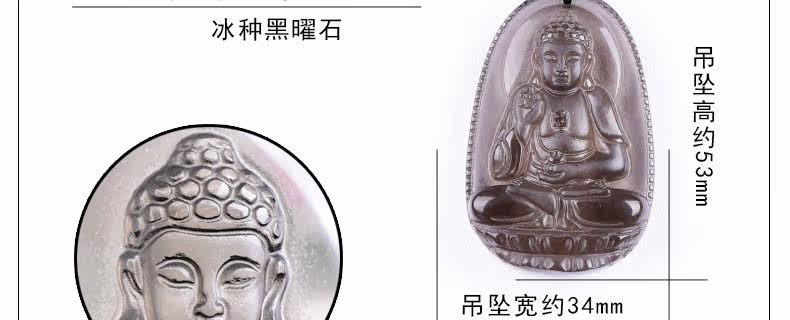 开光天然冰种黑曜石吊坠 阿弥陀佛菩萨男女款属狗猪本命佛守护神