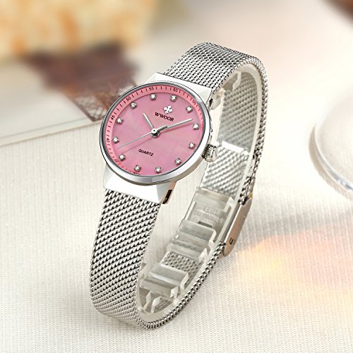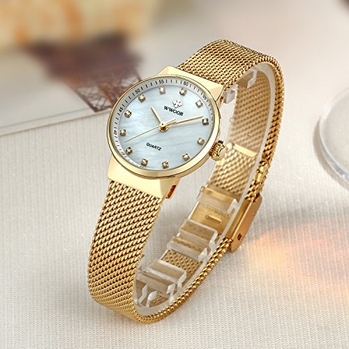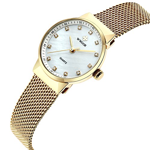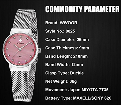 -. Title : WWOOR Women's Elite Mesh Band Steel Watch Girl's Sports Wrist