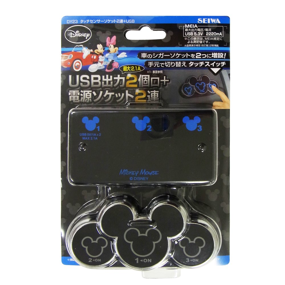 Seiwa Disney touch sensor socket 2 stations + USB Mickey Black blue LED