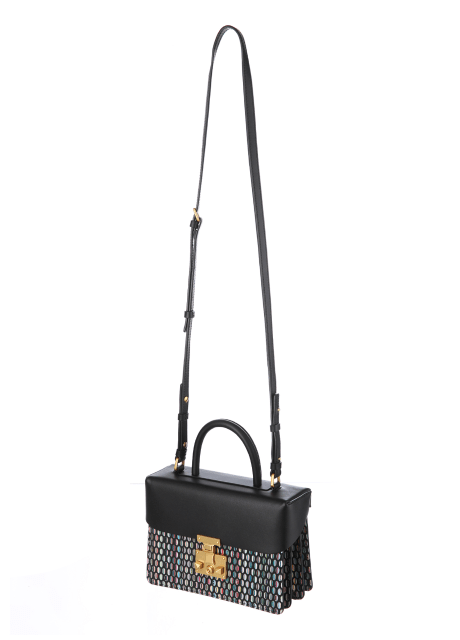 젊은 연령층에게 어필 가능 한 미니 크로스 백입니다. 아코디언 형태의 마찌로 3칸으로 나뉜 공간으로 수납을 활용하기에 용이합니다. 총 3 SKU 로 구성되었고 딥크로코 가죽으로 씌운 올블랙 SKU와 멀티 컬러 아테나 SKU, 또 블루/블랙 투톤컬러의 스팽글을 사용한 블루 SKU 로 구성되었습니다.