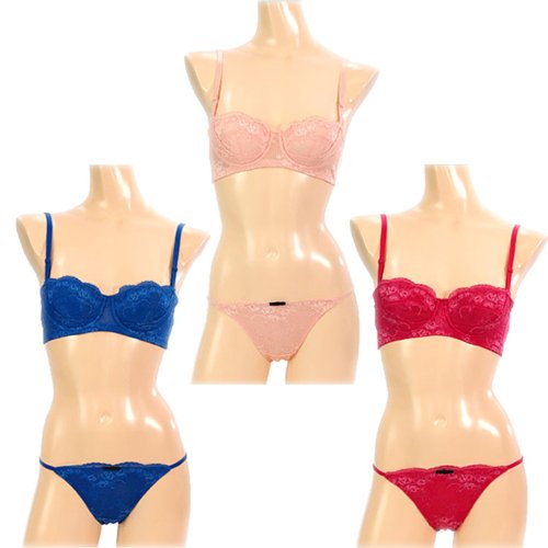 -. Title : セクシー・エレガントレースブラジャー&ショーツセット サーモンピンク ブルー ショッキングピンク 3色組C65(M)