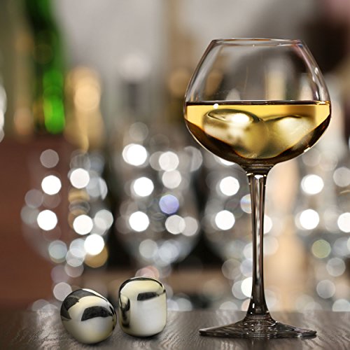 -. Brand : VinoVivo -. Feature : ENJOY YOUR WINE MORE - Makes it easy to enjoy wines at the optimal temperature without having to wait. Gently drop two Chillers in a glass fo wine for the equivalent cooling power of ice without diluting your favorite merlot, chardonnay, or champagne / DISHWASHER SAFE - Made from food grade stainless steel and non-toxic freezable gel core, they are dishwasher safe for easy clean up. The rounded corners keep your favorite glasses safe from damage. Reuse them for years of perfectly chilled wine / A BEAUTIFUL GIFT - Makes a perfect housewarming, birthday, & engagement gift for any wine lovers. Even people that already own VivoVino Chillers are delighted to get a second set for when friends and family come over / WORKS FOR WHISKY & SCOTCH AS WELL - Don't tell the husband if you don't want to, but these work as good if not better than the whiskey stones he has been wanting. / 100% MANUFACTURER SATISFACTION GUARANTEE - If you're unhappy with your purchase for any reason, you are backed by a 30 Day Manufacturer Satisfaction Guarantee. -. ProductGroup : Kitchen -. ProductTypeName : KITCHEN -. Title : VinoVivo Iceless Wine Chillers - Lets Her Drink A Glass Of Red Or White Without Watering It Down (2 Glass Set)