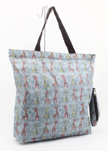 Pack N Go Foldable Zipper Blue Tote Bag Giraffe Print