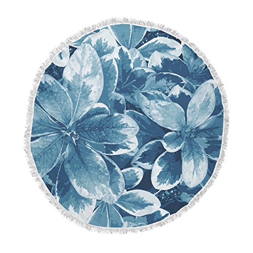 KESS InHouse Julia Grifol Leaves Blue Floral Round Beach Towel Blanket
