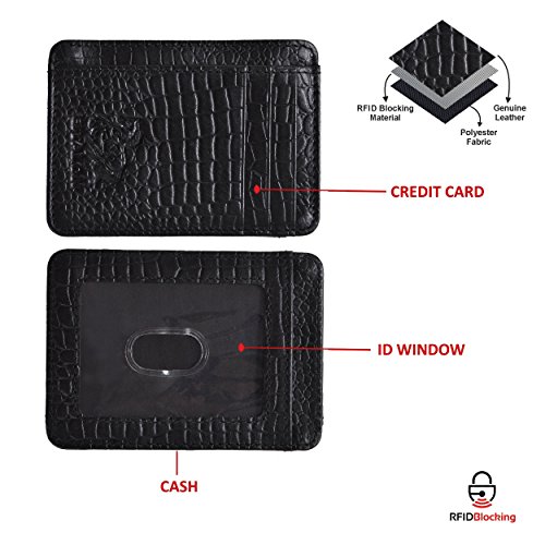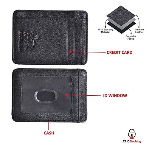-. Feature : 100% Genuine leather credit card is specially designed to carry currency note,Ids & credit cards, / RFID BLOCKING TESTED & APPROVED BY INDEPENDENT LAB TESTS. Our wallets have been tested for 13.56 MHz Frequency in which our credit cards, debit cards, driver license and ID cards operate. PLEASE BE NOTED THAT the signal of some ID badge, access cards and hotel room cards which operates in 125 KHz, can not be blocked by this wallet. / FUNCTIONALITY: 1 Note Compartment, 4 credit card slots & 1 ID compartment / ENHANCES PERSONAL SECURITY: We leverage top RFID technology to block RFID signals used to electronically scan your wallet as someone passes by unnoticed. This keeps your vital information in driver license, debit cards and credit cards from being stolen. / GIFT BOX PACKING PACK: a perfect gift idea for your beloved man for birthday, valentine, Christmas and anniveray.