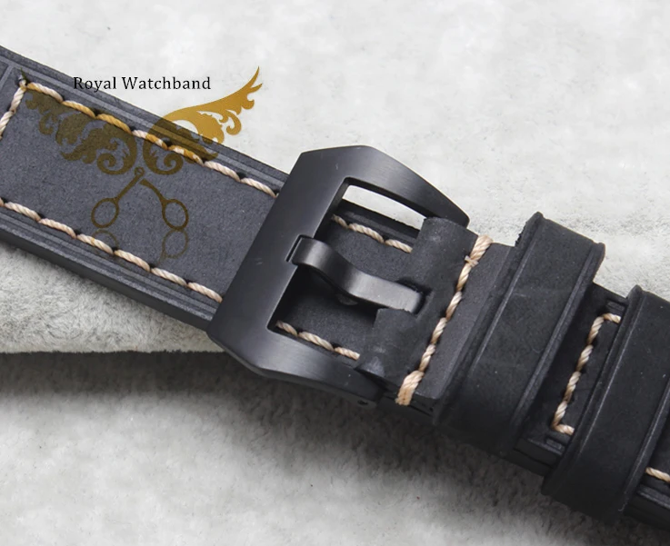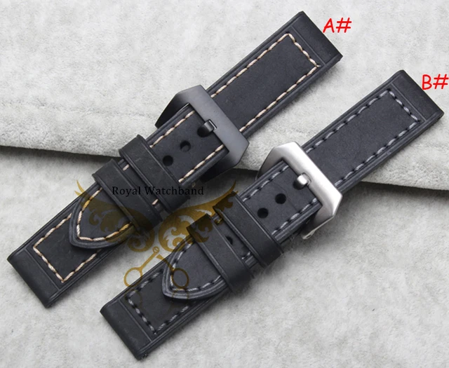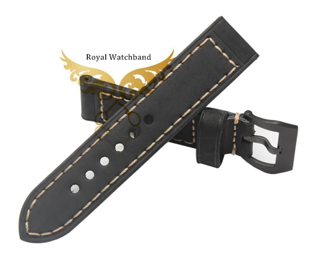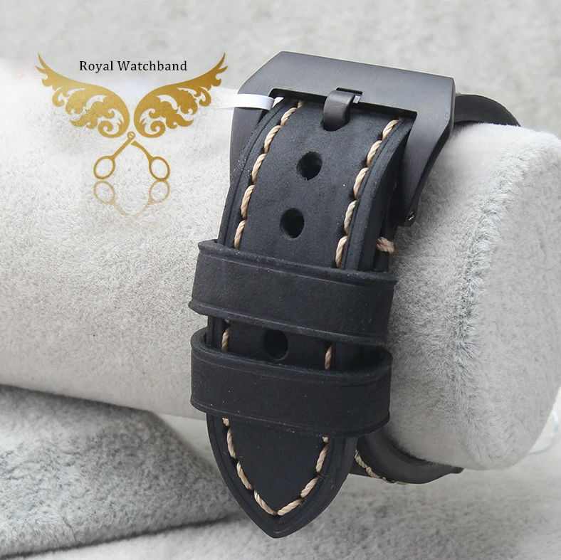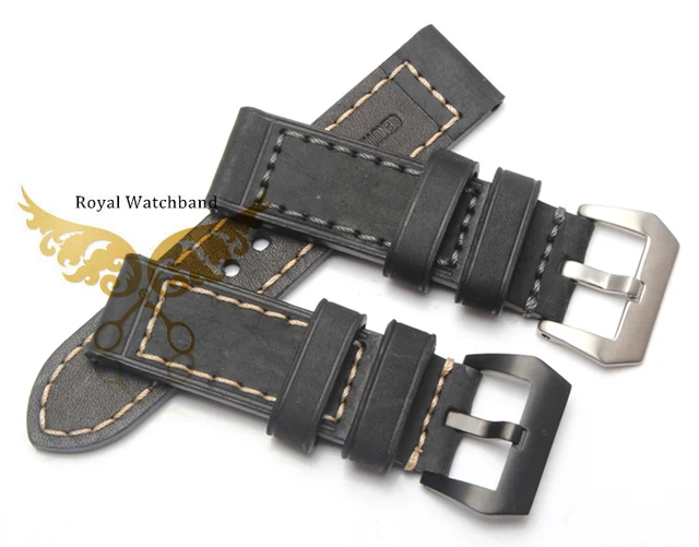 | [해외] 20mm 24mm 22mm 26mm 새로운 최고급 품질 회색 진짜 가죽 시계 밴드 스트랩은 검은 색 브러시 스틸 버클 버클 |