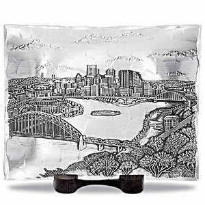 Each Pittsburgh Bridges Accessory Tray will arrive in a handsome gift box which mimics the appearance of the hand-hammered piece you have purchased. This box will not only impress it?s lucky recipient, but also double as safe storage when not on display.