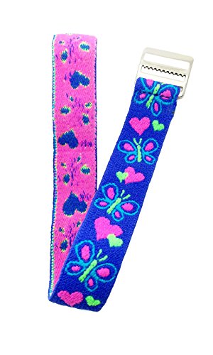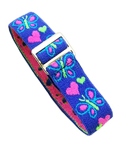 -. Feature : Hearts & Butterflies Design. / Adjustable and Washable Elastic Fabric Strap. / Perfect for little wrists - comfortable too - Safety Stainless Steel Silver Clasp. / Length from end to end = 8 inches = 20 cm = 200 mm. However, this watch band is made out of elastic, which means that it can stretch to accommodate larger adult wrists comfortably. / Will also fit the following Timex Youth Analog Watches: T7B151, T89022, T89001, TW7B99500, TW7C059009J, TW7B99400.