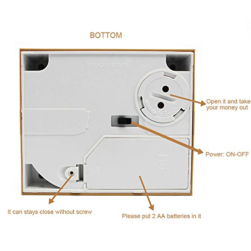 How to use: Confirm the coin outlet is closed. Turn the bottom power switch to ON position. Put a coin to correct position and gently press the coin,starting the program. After about one second,start up procedure began to work. The animal head rises to jack up the box cover,and its hand will take the coin into the box.