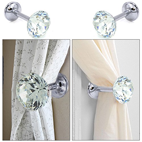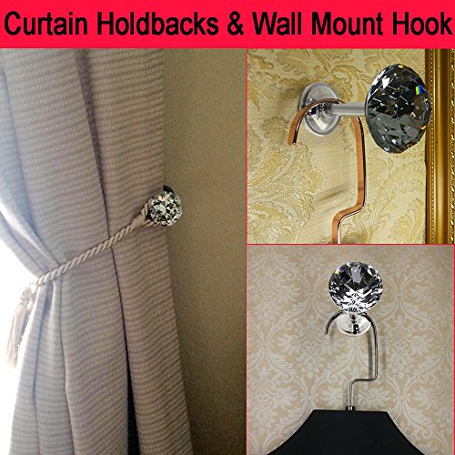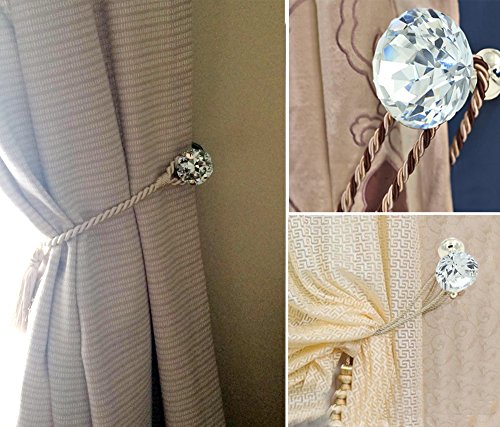 Sumnacon® 2 Pieces Crystal Curtain Hold Backs Window Drapery Tie Back Clips Wall Hook Tassel Holder