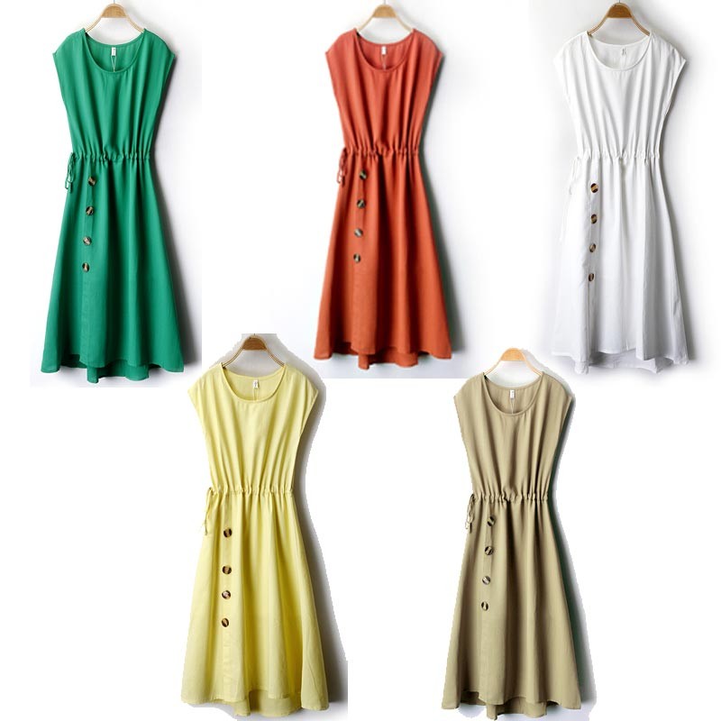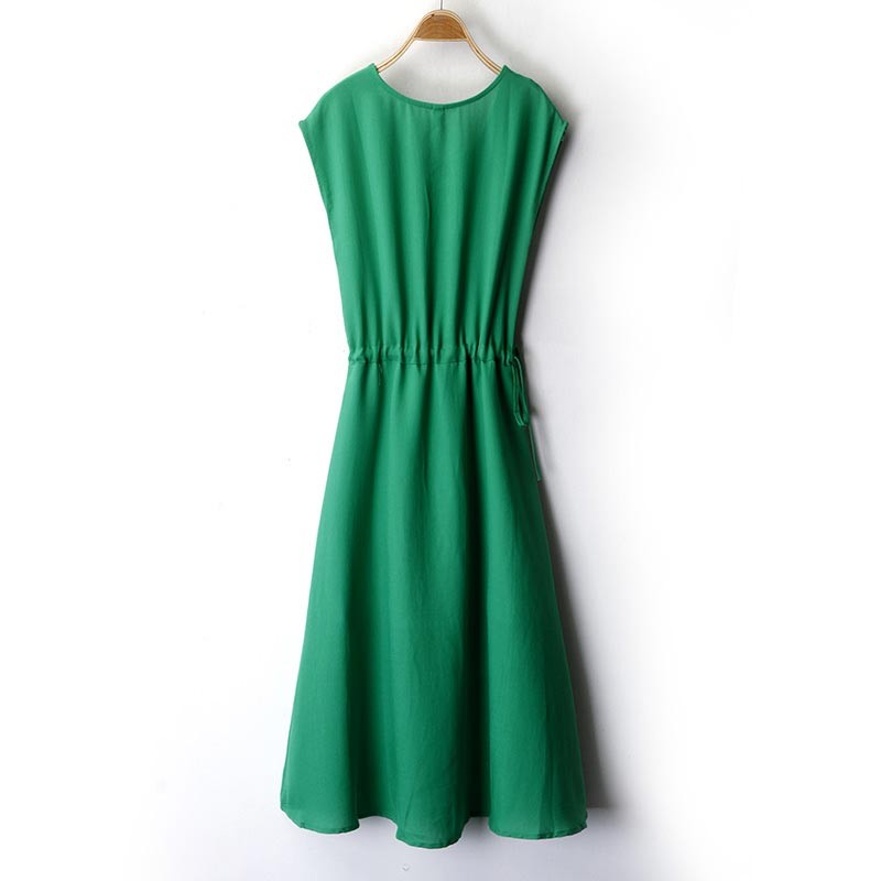鮮やかなカラーのウエストリボンデザインノースリーブワンピース!