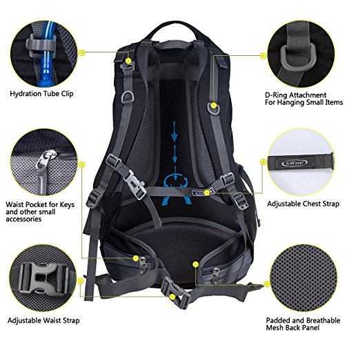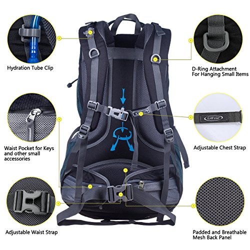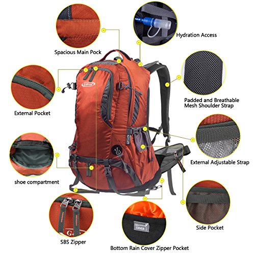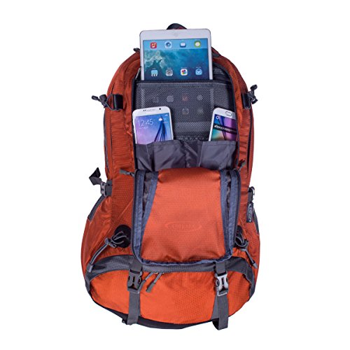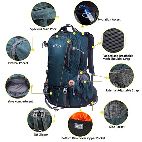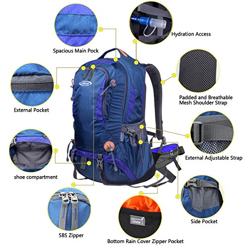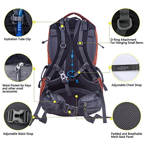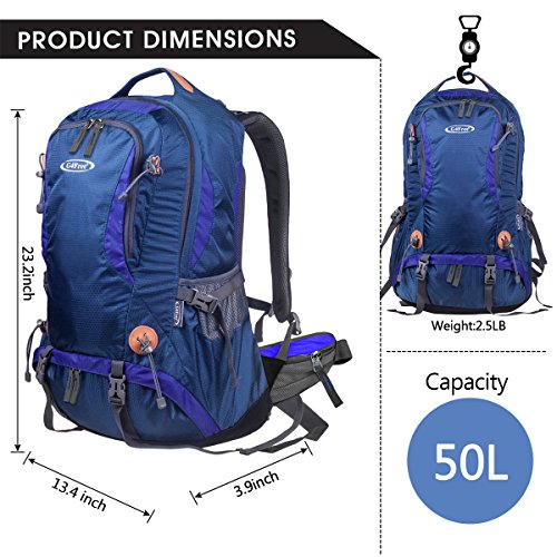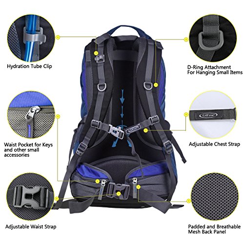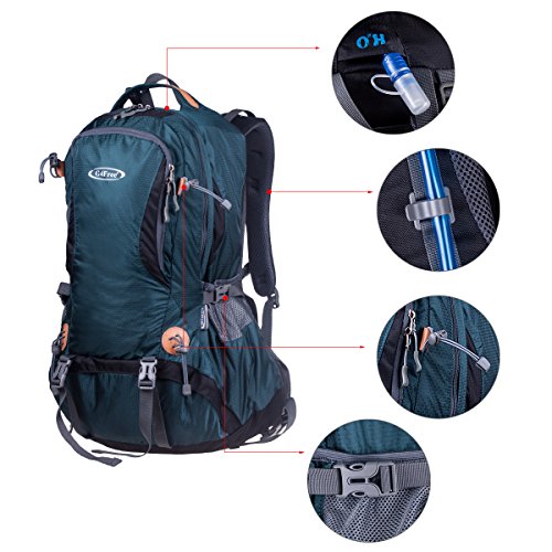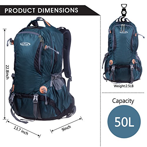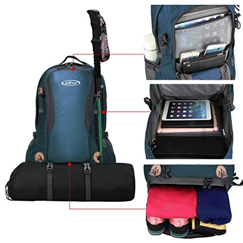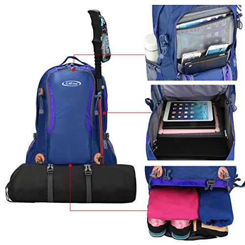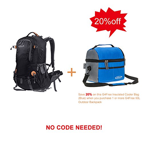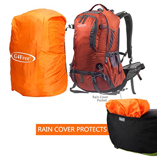 G4Free 50L hiking backpack is equipped with Thick shoulder straps for added comfort. Ample internal and external pockets are available and side pockets give you plenty of storage space for your gear. A waterproof removable cover is included.