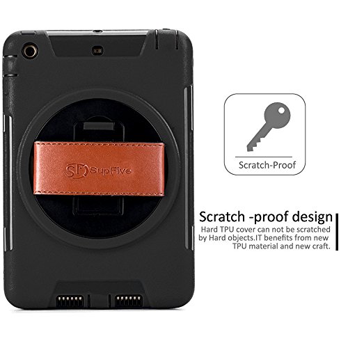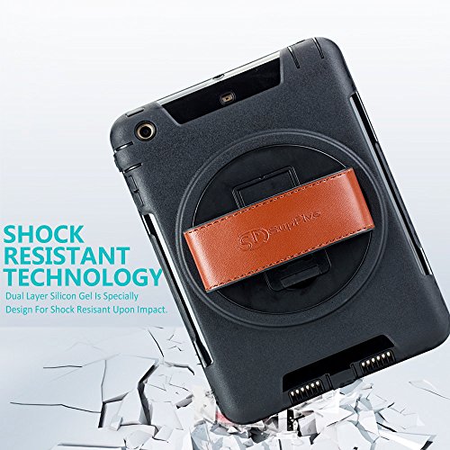 iPad Mini 1 2 3 Case,360 Rotation Kid Fun Play Armor Case, Heavy Duty Dual Protective Back Cover Rugged Case with Kickstand and Leather Hand Strap for iPad Mini 1 2 3(Black)