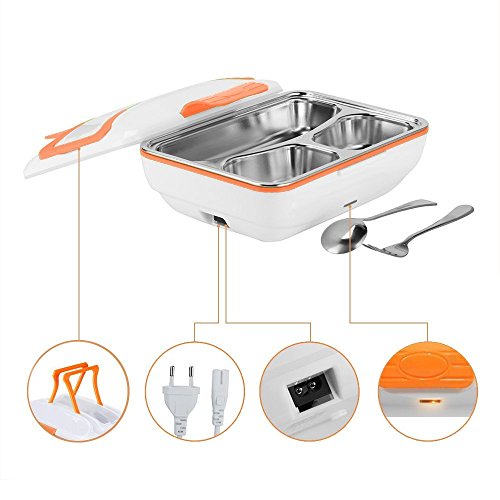 SUPOW Lunch Box, Portable Electric Heating Lunch Warmer Box with Removable Stainless Steel Container Food Heater (Orange)