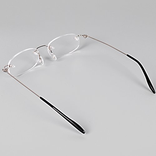 -. Feature : Package includes: One piece of Light Silver-tone reading glasses with a clear transparent case / Temple length: 5 9/16"(14cm); Frame width: 5"(13.2cm) / Material: High Impact-Resistance Polycarbonate / Diopters power: +2.00 / High-quality refractive lens is smudge resistant & easy to keep clean
