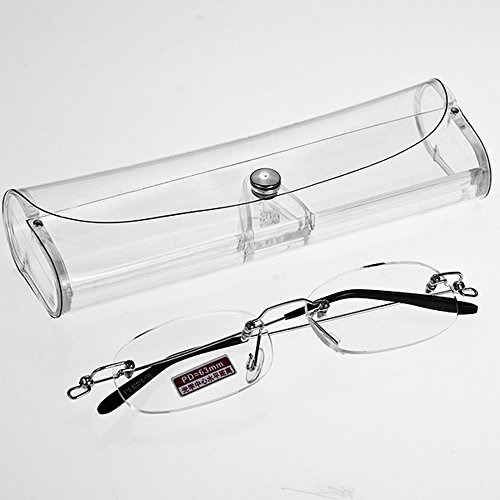 -. Title : Fashion Super Lightweight Unisex Design Book Map Menu Rimless Frameless Magnifying Reading Glasses Clear Eyeglasses Case +2.00 New