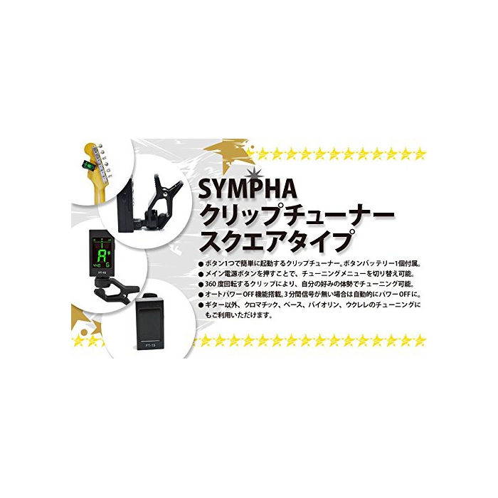 원본상품명: SYMPHA クリップチュナ (ギタ ベス ウクレレ ヴァイオリン) スクエアタイプ クリップ式チュナ チュニング範:B0 - B7