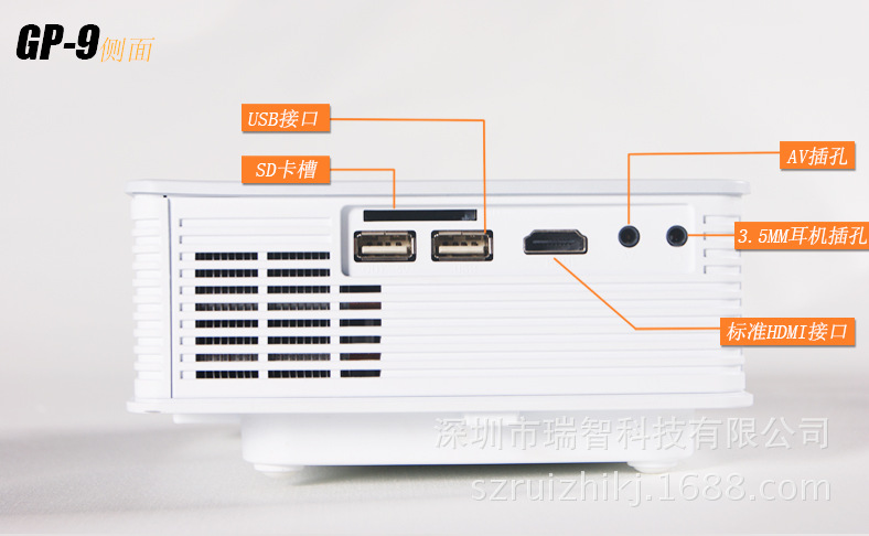GP9家用投影仪 高清LED微型迷你娱乐便携投影机支持1080p高清投影