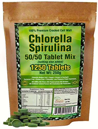-. Title : Premium Chlorella Spirulina 1250 Tablets Mix - Over 80 Day Supply - Sunlight Grown. Cracked Cell Wall. Non GMO. Chlorella Spirulina Growth Factor. High Protein Content.