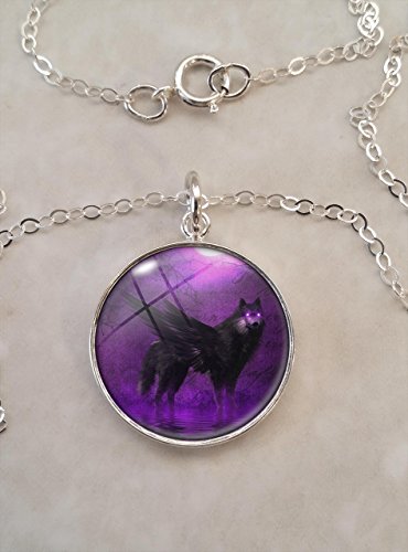 -. Title : Winged Wolf Moon .925 Sterling Silver Necklace