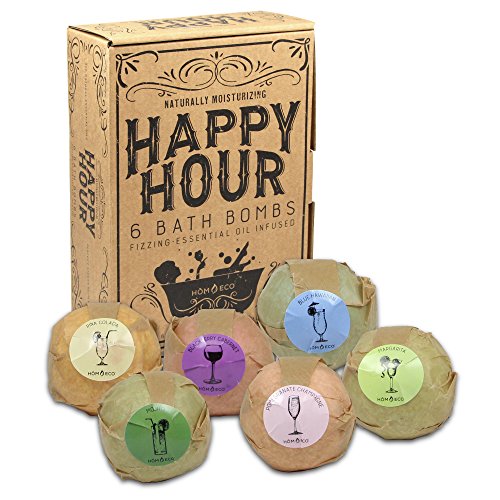 -. Feature : HANDMADE FROM THE FINEST INGREDIENTS - Each bath bomb is made with cocoa butter, coconut oil, sunflower oil, and essential oils to achieve desired happy hour scent (agave, lime, citrus, pineapple, coconut, orange, cherries, blackberry, strawberry, mandarin, grapefruit, bamboo, mint, and sparkling champagne) / TURN BATH TIME INTO THE BEST PART OF YOUR DAY - Turn bath time into spa time. You can relax and revitalize your body and mind. Get bath to nature! / HEAL YOUR SKIN WHILE RELIEVING THOSE ACHES AND PAINS - With the addition of cocoa butter and essential oils, these bath bombs turn your tub water into a healthy soak that will help relieve aches and pains while moisturizing your skin. Great for dry skin! / MAKES A FANTASTIC GIFT - There is no better gift than the gift of relaxation and better health. Whether it's Mother's Day, Father's Day, Valentines Day, Christmas, Birthday, or just because, this gift set will exceed expectations. / MADE IN THE USA - Happy Hour Bath Bombs by HomEco are handmade right here in the USA.