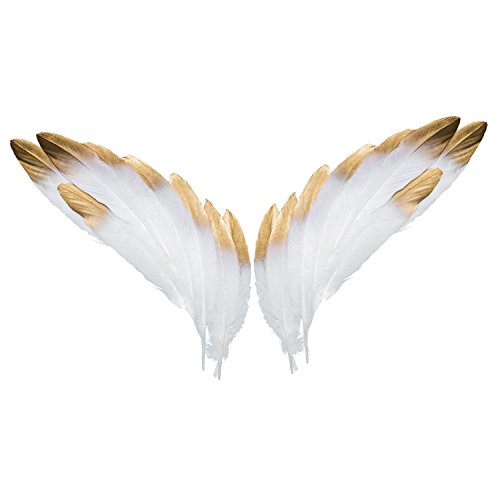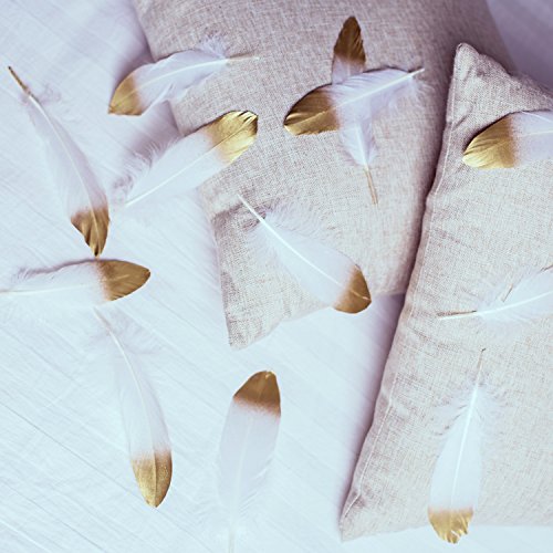 - ✔Package Including:30 pcs Metallic Gold dipped white natural goose feathers.