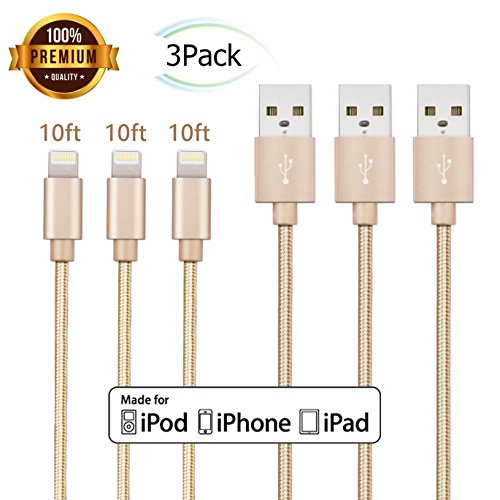 -. Title : 3Pack 10FT 10FT 10FT iPhone Charger 8 Pin USB Lightning data Sync Charging Cable Nylon Braided Cord for iPhone 7/7 Plus,6 /6S/6 Plus/6S Plus,5/5C/5S/SE,iPad Air/Pro/Mini,iPod Touch/Nano(Gold)