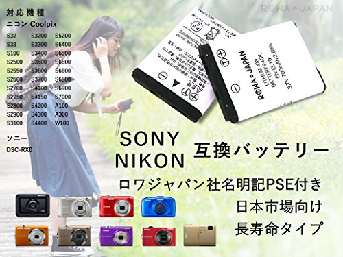 -. Feature : ■容量:700mAh ■電圧:3.7V ■使用セル:BAK / ■互換型番:◆Nikon EN-EL19 ◆SONY NP-BJ1 / ■対応機種:◆SONY DSC-RX0 対応◆Nikon Coolpix S32 S33 S100 S2500 S2550 S2600 S2700 S2750 S2800 S2900 S3100 S3200 S3300 S3400 S3500 S3600 S3700 S4100 S4150 S4200 S4300 S4400 S5200 S6400 S6500 S6600 S6800 S6900 S7000 A100 A300 W100等対応 / ■純正品と同じように使用が可能の完全互換品 ■バッテリー残量表示対応できます ■本体、純正の充電器で充電できます / ■電気用品安全法[ロワジャパンPSEマーク]・EU加盟国基準適合CEマーク取得済で安心安全!