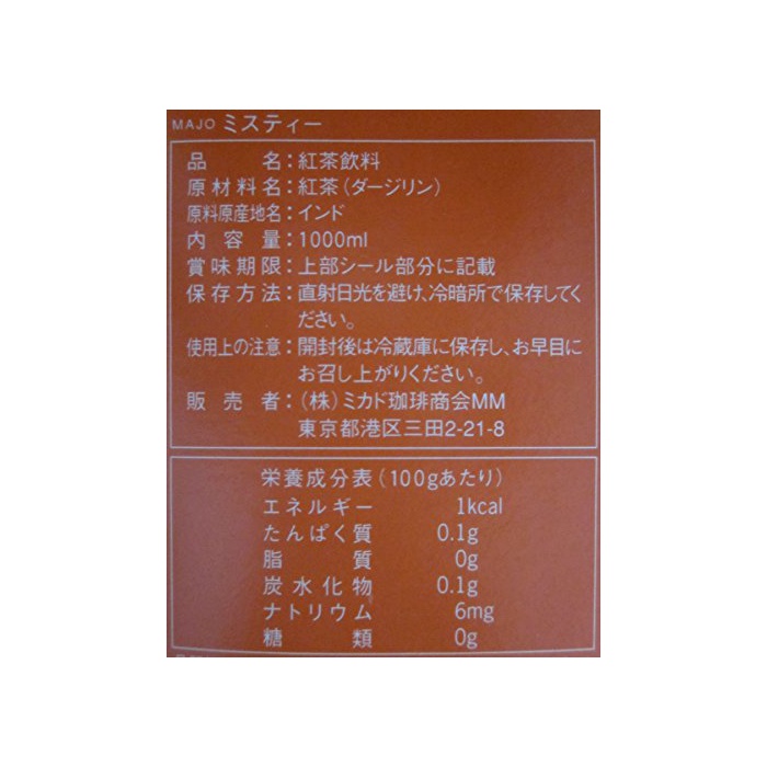 원본상품명: ミカド?? MAJOミスティ?無糖(T-30)1000ml(6本入り)