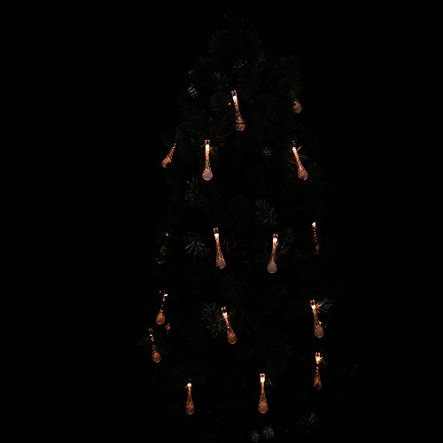 Sunnydaze 30-Count Warm White Water Drop LED Solar Powered String Lights, Includes One 20-Foot Strand