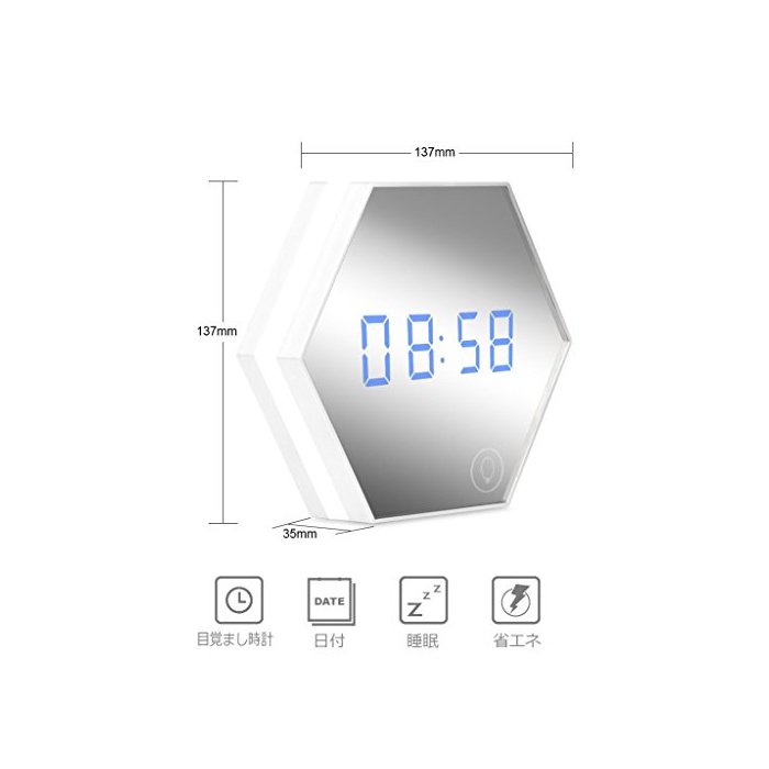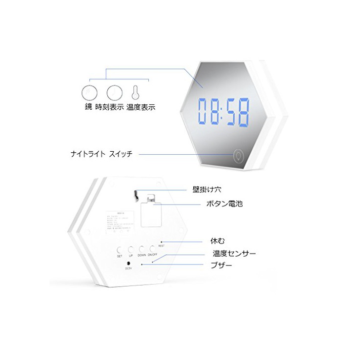 원본상품명: POTOJP 多機能 ミラ? 目?まし時計 LEDライト付 日付/時間/デジタル?度表示 大音量 USB充電式 携?式 置き時計 壁掛け時計 アラ?ムクロック クロック 化粧鏡 夜間ライト 彼女 子供