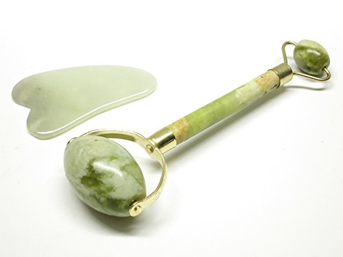 -. Feature : ✔️100% GENUINE NATURAL JADE: Both Jade tools are of premium quality and manufactured with precise craftsmanship, resulting with a fine polished finish that will leave a smooth touch to your skin. Best used to enhance the effectiveness of serum, moisturizer, and face mask. / ✔️DURABLE FOR LONG LASTING USE: The Jade roller have been specially constructed with a high grade steel along with a thicker steel frame, making it durable for everyday use. / ✔️NO MORE WRINKLES AND PUFFINESS: Both tools are used to help relax your face and body which will increase blood flow, tighten and tone unwanted eye bags, and reduce toxins for a fresher, more youthful appearance. For a more chilling experience, you can place the jade in the refrigerator. / ✔️BODY MASSAGING TOOL: Included is a jade Gua sha tool which can be used on any part of your body, but more commonly for massaging your neck, shoulders, and back. / ✔️PECFECT AS A GIFT: Both the Jade Roller and Gua Sha tool are securely packaged in an amazing designed box package, ready to be gifted to that special someone. And yes, men love using these tools too!