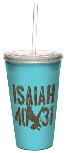 Tree-Free Greetings cc34265 Stencil Style: Isaiah 40:31 Artful Traveler Double-Walled Cool Cup with Reusable Straw, 16-Ounce