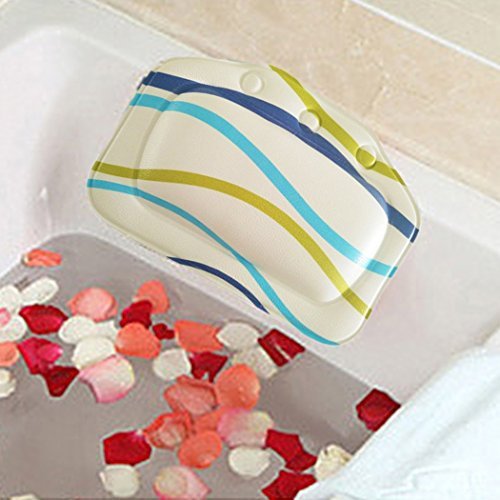 Bath Pillow ,Bomxy PVC Foam Soft Bathroom Spa Washable and Waterproof Pillows With Suction Cups Head Neck Rest Pillows (Wavy-stripes)