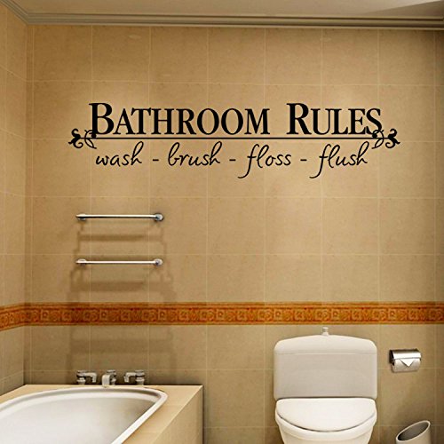 JB JJ011 Wall Stickers Black Text Words for Home Cafe Shop Decoration … (bathroom rules)