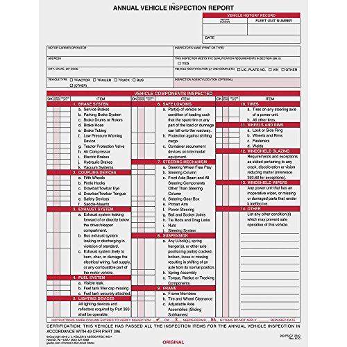Annual Vehicle Inspection Report, 2-Ply w/ Carbon - Stock (Qty: 50 Units)
