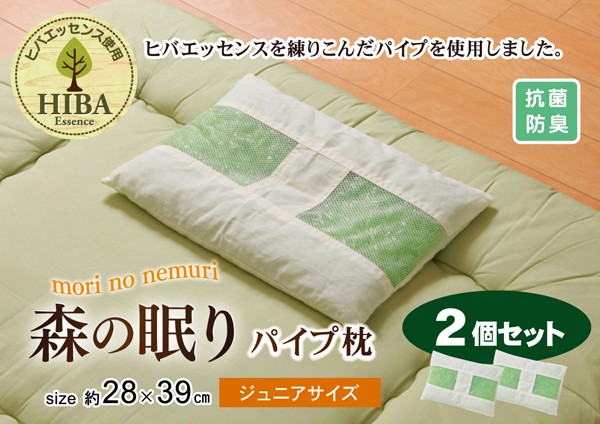 【商品名】 ピロー 枕 ヒバエッセンス練り込みパイプ使用 『ひばパイプJr枕』 2個組 約28×39cm 【ジャンル・特徴】 安らかな森の眠りをご提案。マクラ まくら ■サイズ・色違い・関連商品■ひばパイプJr枕 単品■ひばパイプJr枕 2個組[当ページ]■ひばパイプ枕 単品■2個組関連商品の検索結果一覧はこちら ヒバエッセンス練り込みパイプを使用しています。青森県のヒバの木から抽出した「ヒバエッセンス」をメーカー独自の技術でパイプに加工しました。ヒバエッセンスにはヒノキチオールという、天然物質では極めて抗菌性の高い成分が含まれています。(無加工品に比べ、抗菌・防臭効果があります。)ヒバエッセンスで安らかな森の眠りをご提案します。パイプ使用のため、通気性がよく、熱がこもらず心地よくご使用できます。ファスナー式で中材(パイプ)の交換、高さ(量)の調節が可能です。ご家庭で簡単にパイプが洗えます。■商品スペック【サイズ】約28×39cm 2P【原産国】:日本製(側=中国製)【素材】:生地=側)綿100% メッシュ部分)ポリエステル100% 中材=ヒバエッセンス練り込みポリエチレンパイプ【洗